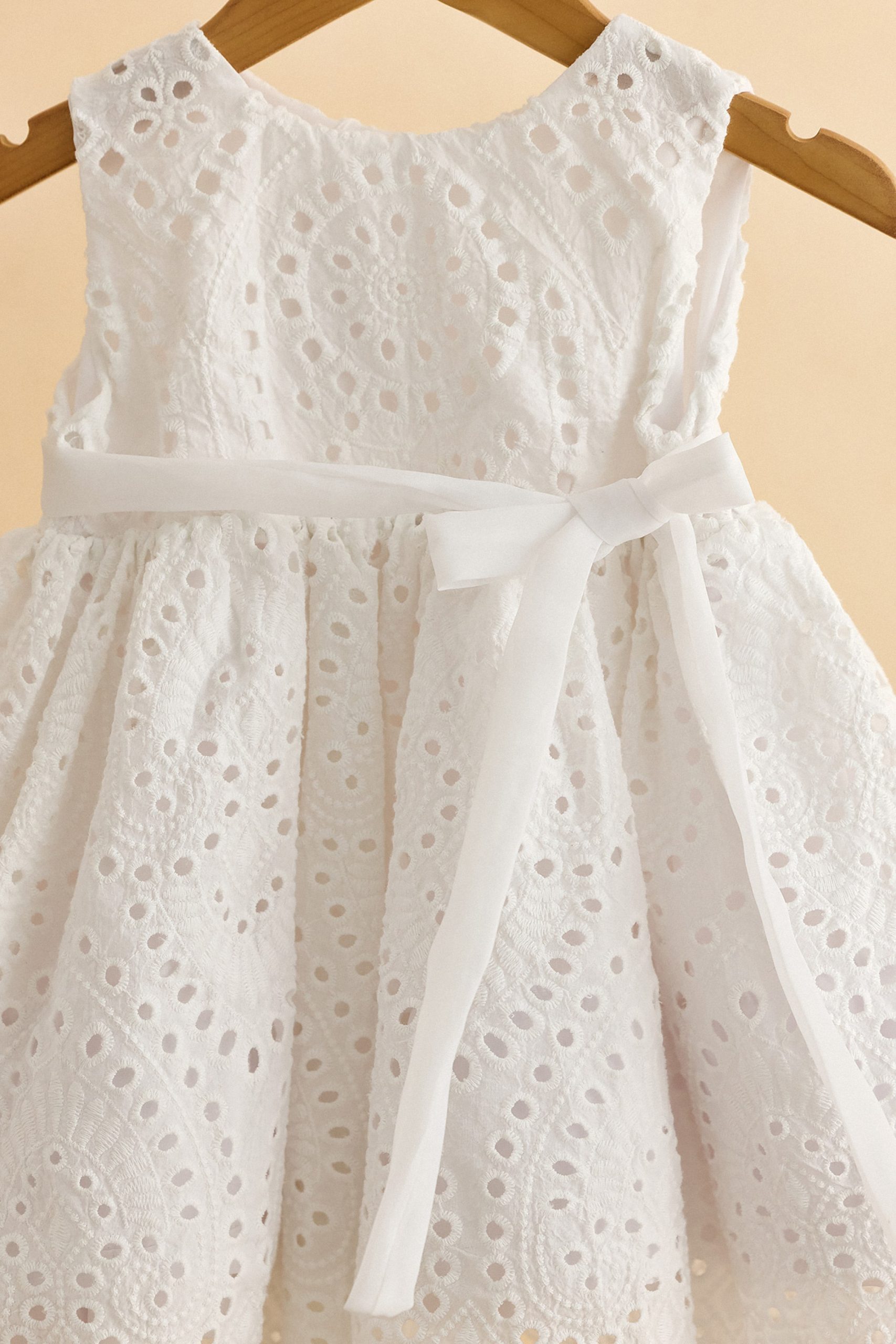 Βαπτιστικό φόρεμα με λευκό broderie και λευκή διάφανη ζώνη
