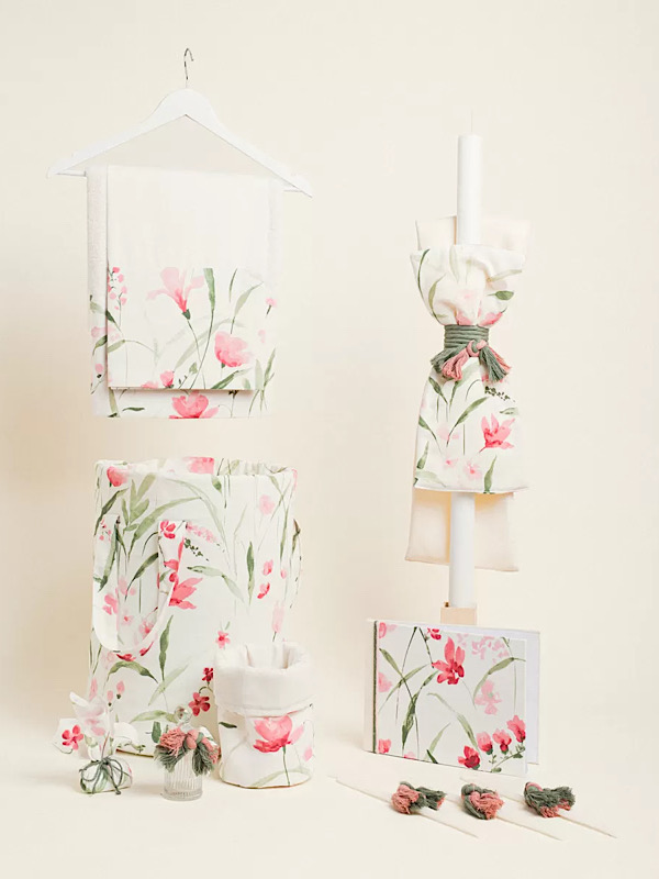 Σετ βάπτισης με άνθη ίριδας και φρέζιας . Το πακέτο περιλαμβάνει: