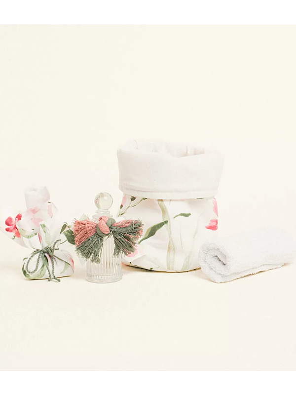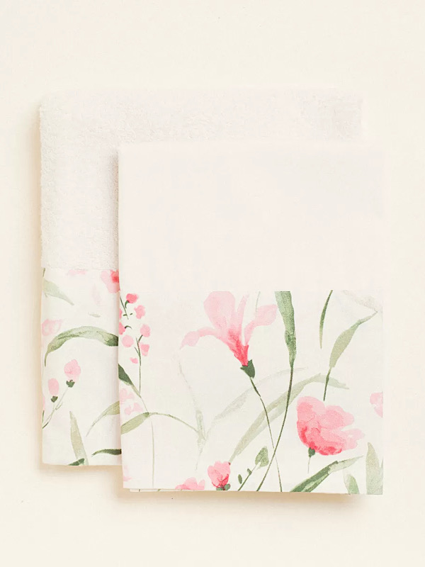 -Εκρού μεγάλη πετσέτα με φάσα με ύφασμα με άνθη ίριδας και φρέζιας